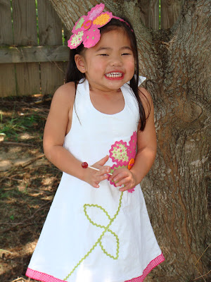I ordered this adorable dress and matching headband from Robin at http://redthreadstitches.blogspot.com/ She is raising money to bring her daughter Mia Hope home. She is really talented! Gracie wouldn't part with her lollipop, so I went with it.